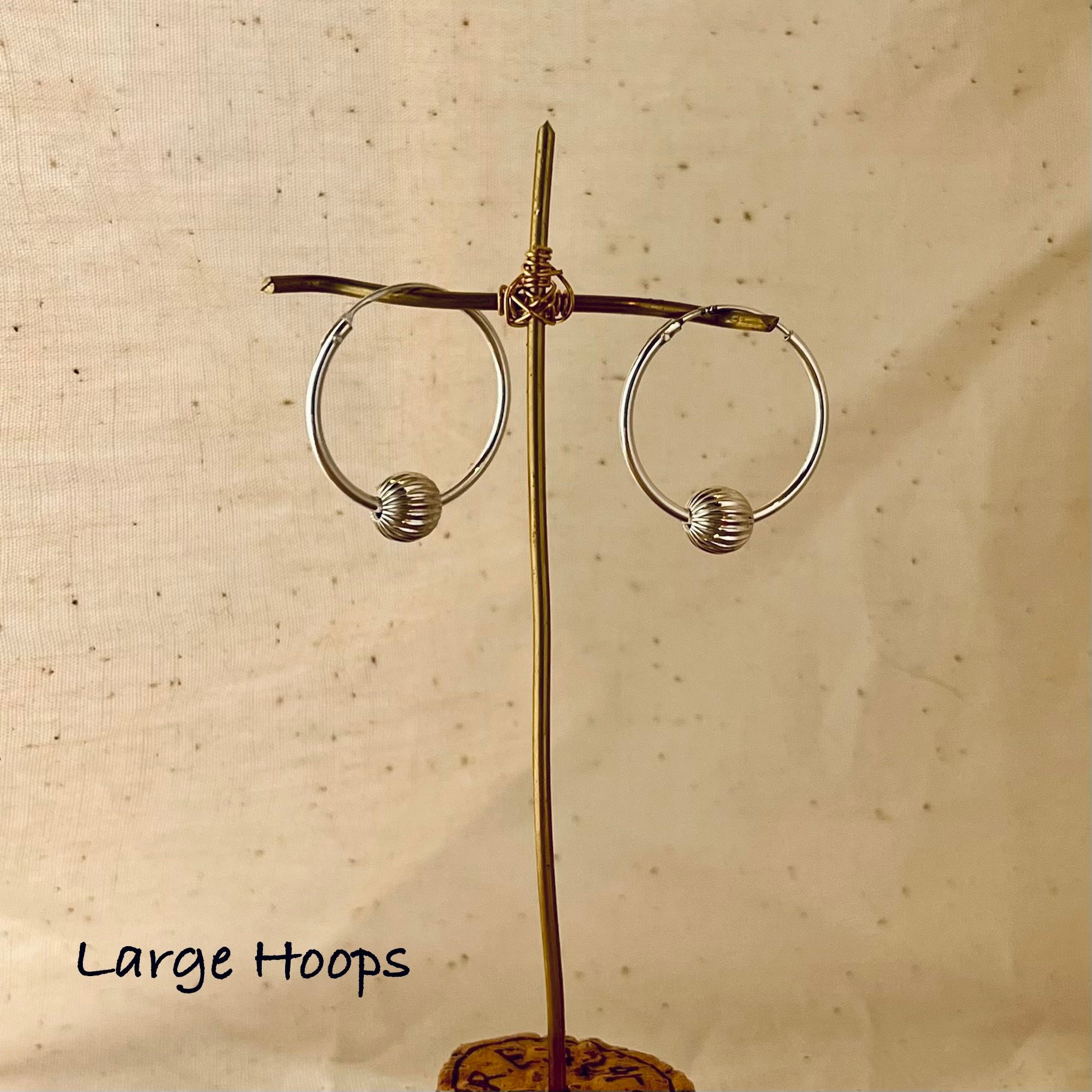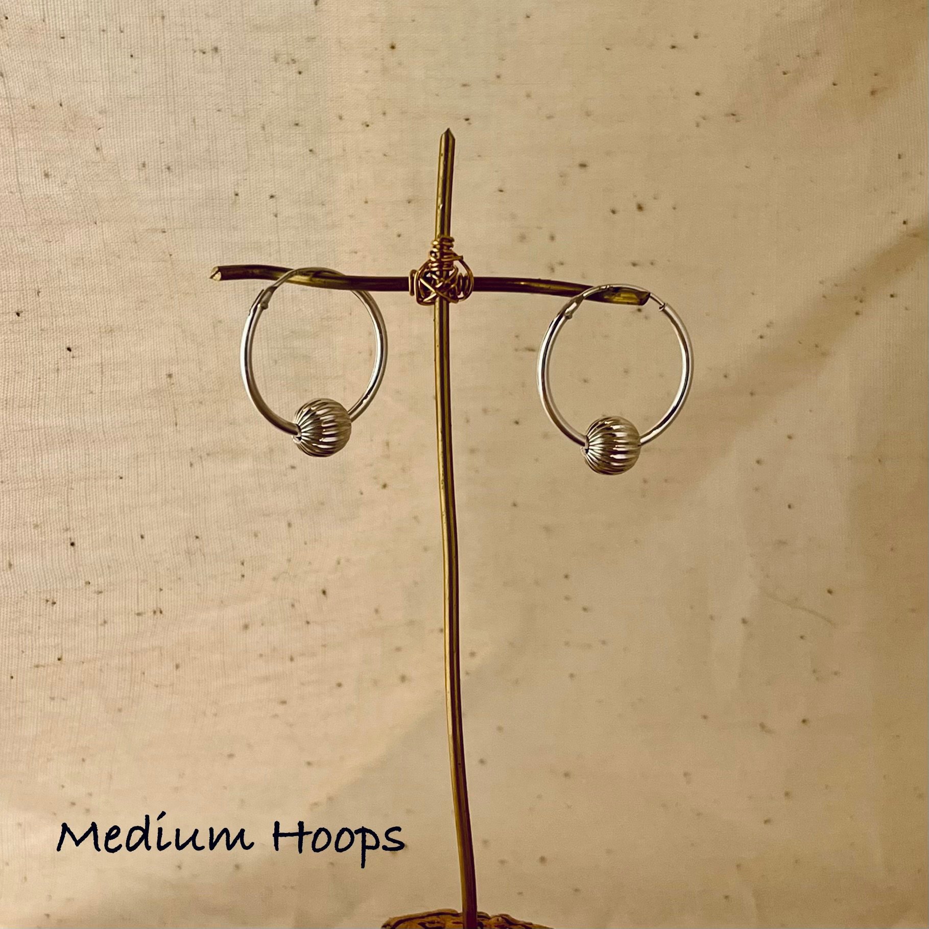 Sterling Silver Hoops, with a hand beaded grooved sterling silver bead. Comes in a choice of sizes;